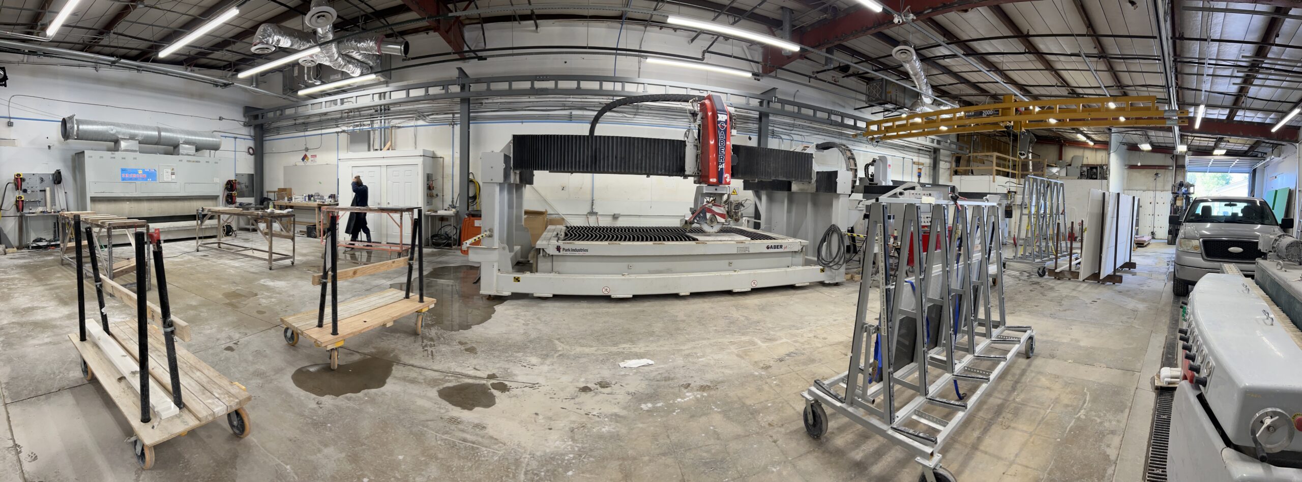 Cornerstone uses a combination of the most modern cutting technology and time tested, artisanal, hand fabrication techniques to create precise, fully custom counter tops. First, we template all of our jobs using a Laser Templating System. The Laser Template System uses a high resolution digital camera and laser measuring system to create a precise digital picture of your counter top area. This digital picture is then transferred to our computer software and programmed into our Northwood CNC SawJet. The computer guided Northwood CNC SawJet uses both a circular saw and a high pressure water stream to precisely cut your stone project. The cut stone pieces are then inspected and receive a finished edge polish by our team of expert stoneworkers.